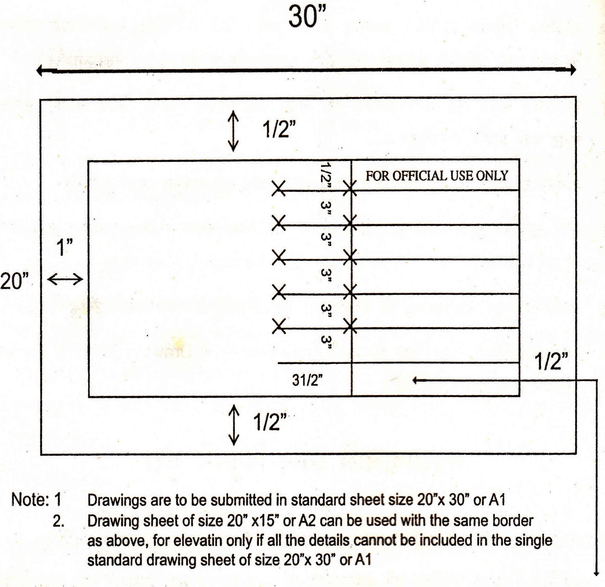 Standard Drawing Sheet size 20” X 30”